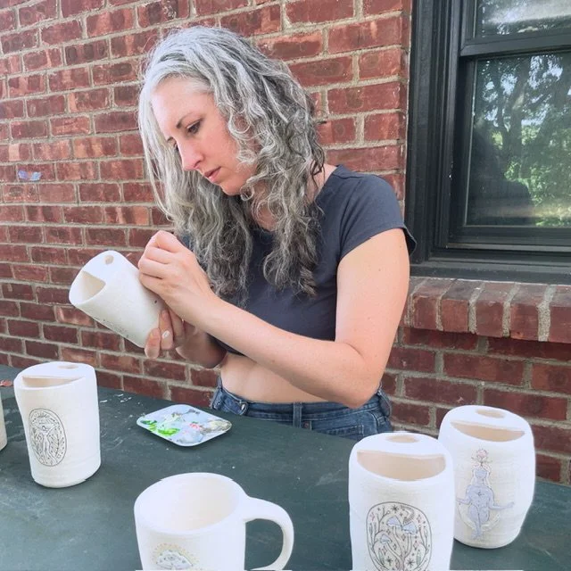 In my free time I enjoy making pottery, creating messy art with my two kids, playing board games no one wants to learn, talking a bit too fast, and of course: all things motherhood.